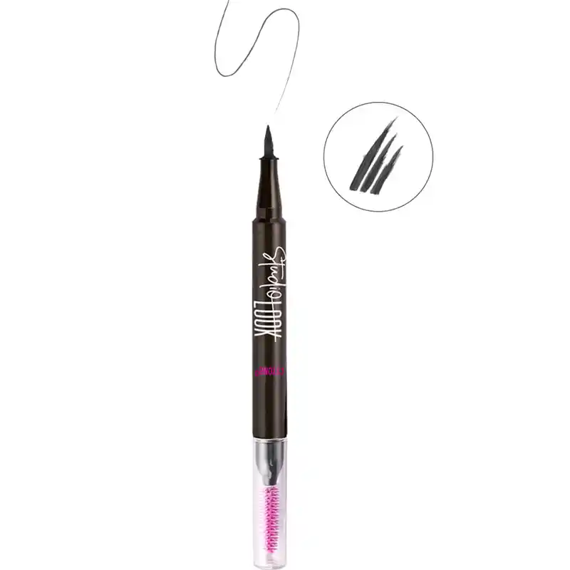 Delineador de cejas en formato plumón 2 en 1 de larga duración con efecto microblading. Su punta permite dibujar trazos finos, simulando vello a vello. Ideal para cejas naturales, definidas y con un efecto de mayor densidad, rellenando con precisión.